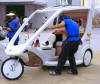 walkway connects the various sites, while high-tech, three-wheeled pedal