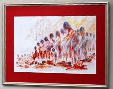 exhibition of drawings by A-bomb survivors (who are called “hibakusha“).