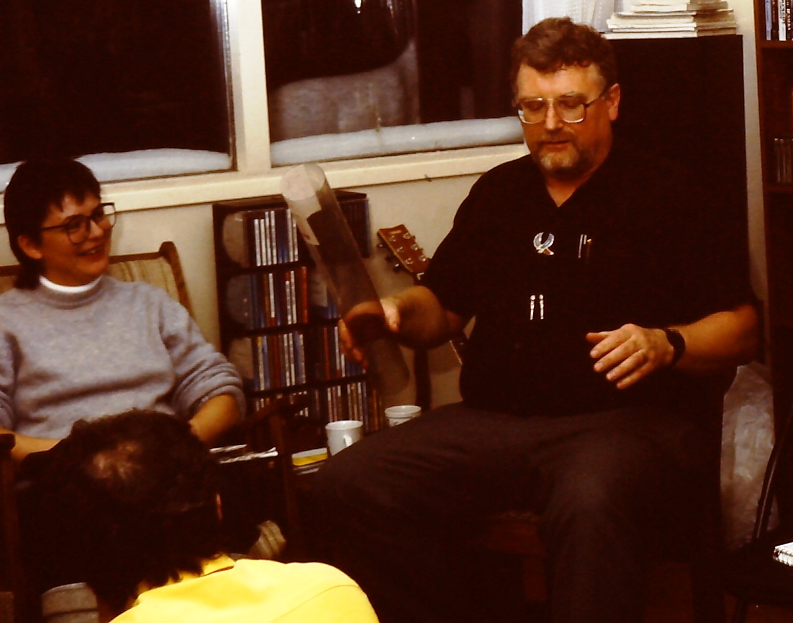 ~~~~~~~~~~~~~~~~~~~~~~~~~~~~~~~ Backgrounder | This Month's Ceilidh | Ceilidhs - past 21 years ~~~~~~~~~~~~~~~~~~~~~~~~~~~~~~~ BACKGROUND: Ceilidh - Scots Gaelic word for 'party' In September of 1990, Steve Goff and Moira Cameron decided to host the first house Ceilidh. The Yellowknife House Ceilidhs are informal music and story gatherings that are hosted in different homes every month. Also known as kitchen parties or song circles, the Ceilidhs have a unique informal and inviting atmosphere ideal for the aspiring musician or storyteller. But they are also a wonderful place to just go and listen. In general, the Ceilidhs are held the last Saturday of every month, with the notable exception of the December Ceilidh, which is traditionally held on New Year's Eve. The Ceilidh starts at 8 p.m. and is open to everyone - you don't need an invitation. Participants sit around in a circle and take turns sharing a story, piece of music, dance, or a joke, or they may pass if they don't feel like doing anything. There are three simple rules for the Yellowknife House Ceilidhs: "Anything goes" - whatever the style of music, language, culture, religion. They are 'listening' events - the Ceilidhs are not places to hear 'background music' while you chat with friends. "Help yourself" - food and drinks are laid out buffet style. ~~~~~~~~~~~~~~~~~~~~~~~~~~~~~~~ Backgrounder | This Month's Ceilidh | Ceilidhs - past 21 years ~~~~~~~~~~~~~~~~~~~~~~~~~~~~~~~ PAST 21 YEARS: photo gallery